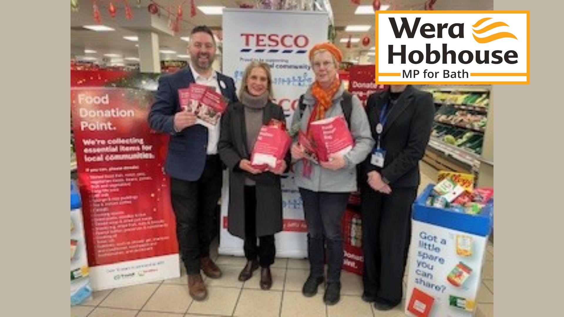 Wera Hobhouse MP for Bath joined staff and volunteers at the Tesco Winter Food Collection in Tesco Express in Weston on Saturday 29th November.